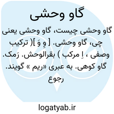 گاو وحشی. [ وِ وَ ]( ترکیب وصفی، اِ مرکب ) بقرالوحش. رَمک. گاو کوهی. به عبری «ریم » گویند. رجوع به قاموس کتاب مقدس شود.