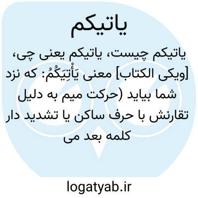 [ویکی الکتاب] معنی یَأْتِیَکُمُ: که نزد شما بیاید (حرکت میم به دلیل تقارنش با حرف ساکن یا تشدید دار کلمه بعد می باشد)