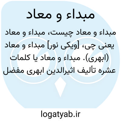 [ویکی نور] مبداء و معاد (ابهری). مبداء و معاد یا کلمات عشره تألیف اثیرالدین ابهرى مفضل بن عمر بن مفضل فیلسوف، منطقى، منجم و ریاضى دان ایرانی