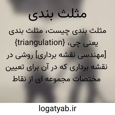 {triangulation} [مهندسی نقشه برداری] روشی در نقشه برداری که در آن برای تعیین مختصات مجموعه ای از نقاط از مثلثهای تشکیل شدۀ بین آنها استفاده می کنند
