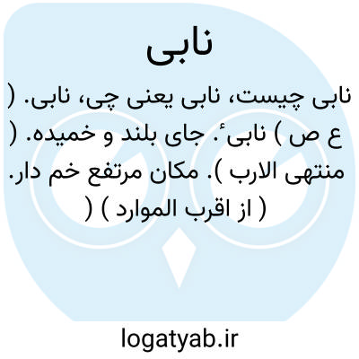 نابی. ( ع ص ) نابی ٔ. جای بلند و خمیده. ( منتهی الارب ). مکان مرتفع خم دار. ( از اقرب الموارد ) ( المنجد ). || آینده از جای دیگر. ( منتهی الارب ). سیل نابی ٔ؛ که از جای دیگری بیاید. رجل نابی ٔ؛ مردی که از دیار دیگری بیاید. ( از منتهی الارب ) ( اقرب الموارد ). || ( از «ن ب و» ). سمین. ( معجم متن اللغة ) ( المنجد ).