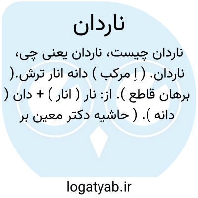 ناردان. ( اِ مرکب ) دانه انار ترش.( برهان قاطع ). از: نار ( انار ) + دان ( دانه ). ( حاشیه دکتر معین بر برهان قاطع ). دانه انار. ( آنندراج ) ( ناظم الاطباء ) ( انجمن آرا ). حب الرمان. ( مهذب الاسماء ). اناردان. اناردانه. ناردانه. ناردانک: