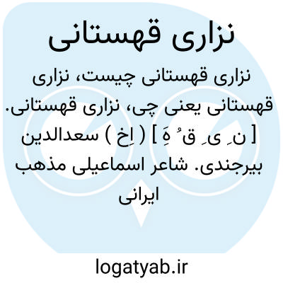 نزاری قهستانی. [ ن ِ ی ِ ق ُ هَِ ] ( اِخ ) سعدالدین بیرجندی. شاعر اسماعیلی مذهب ایرانی است که در اواخر قرن هفتم و اوایل قرن هشتم می زیسته است. تخلص خود را از نام المصطفی لدین اﷲبن المستنصر باﷲ خلیفه فاطمی مصر معروف به نزار گرفته است. وی گذشته از دیوان قصاید و غزلیات، مثنویی به نام دستورنامه دارد. وفات وی به سال 720 هَ. ق. در بیرجند اتفاق افتاد. او راست: