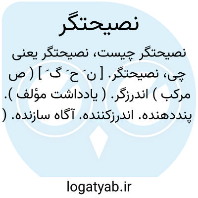 نصیحتگر. [ ن َ ح َ گ َ ] ( ص مرکب ) اندرزگر. ( یادداشت مؤلف ). پنددهنده. اندرزکننده. آگاه سازنده. ( ناظم الاطباء ). ناصح. نصیح. مشفق خیرخواه که به خیرخواهی پند دهد و به صواب رهنمائی کند: یک روز گرم گاه به خانه اندر نشسته بود [ قابیل ] ابلیس بیامد بر شبه یک فرشته... گفت من فرشته ام از آسمان آمده ام تا ترا نصیحت گر باشم و در کار تو تدبیر کنم. ( ترجمه طبری بلعمی ).