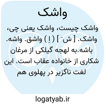 واشک. [ ش َ ] ( اِ ) واشق. واشه. باشه.به لهجه گیلکی از مرغان شکاری از خانواده عقاب است. این لغت ناگزیر در پهلوی هم واشک بوده که معرب آن واشق شده است. ( از فرهنگ جغرافیائی ایران ج 296 ).