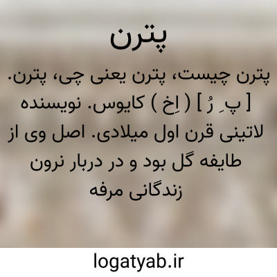 پترن. [ پ ِ رُ ] ( اِخ ) کایوس. نویسنده لاتینی قرن اول میلادی. اصل وی از طایفه گل بود و در دربار نرون زندگانی مرفه داشت و کتابی بنام ساتیریکُن دارد. این کتاب اثری نفیس راجع به آداب و عادات رومیان قرن اول میلادی است. وی با گشودن رگ انتحار کرد.