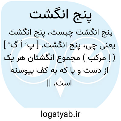 ( اسم ) ۱- مجموع انگشتان هر یک از دست و پا که بکف پیوسته است: ( پنج انگشت یکی نیستند. ) ۲- چوبی است بلند که بر سر آن پنج چوب کوتاه مثل انگشت نصب شده و بدان خرمن کوفته را باد دهند انگشته آشور پنجه مدری هاکو. ۳- گیاهی است که برگ آن مانند برگ شاهدانه است و بوت. آن در کنار رودها روید ذو خمسه اصابع ذوخمسه اوراق دل آشوب پنجنگشت. تخم آنرا حب الفقد خوانند.