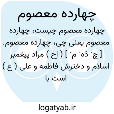 چهارده معصوم. [ چ َ دَه ْ م َ ] ( اِخ ) مراد پیغمبر اسلام و دخترش فاطمه و علی ( ع ) است با فرزندانش که امامان شیعه اند؛ یعنی: امام حسن، امام حسین، امام زین العابدین، امام محمدباقر، امام جعفر صادق، امام موسی الکاظم، امام رضا، امام محمدتقی، امام علی نقی، امام حسن عسکری، امام مهدی قائم الزمان.