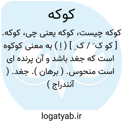 کوکه. [ کو ک َ ] ( اِخ ) دهی از دهستان ایل تیمور که در بخش حومه شهرستان مهاباد واقع است و 265 تن سکنه دارد. ( از فرهنگ جغرافیایی ایران ج 4 ).