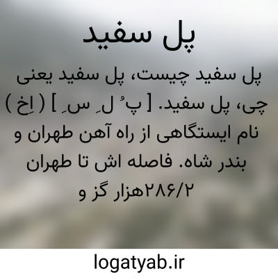 پل سفید. [ پ ُ ل ِ س ِ ] ( اِخ ) نام ایستگاهی از راه آهن طهران و بندر شاه. فاصله اش تا طهران 286/2هزار گز و آن ایستگاه هفدهم راه آهن شمال است از سوی طهران.
