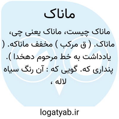 ماناک. ( ق مرکب ) مخفف ماناکه. ( یادداشت به خط مرحوم دهخدا ). پنداری که. گویی که: آن رنگ سیاه لاله، ماناک اندر دل مشتری است کیوان.خاقانی.روز روشن ندیده ام، ماناک همه عمرم به چشم درد گذشت.خاقانی.زلف تو سیه چراست ماناک بسیار در آفتاب گشته.امیرخسرو ( از آنندراج ).و رجوع به مانا شود.