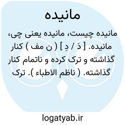 مانیده. [ دَ / دِ ] ( ن مف ) کنار گذاشته و ترک کرده و ناتمام کنار گذاشته. ( ناظم الاطباء ). ترک کرده. مانده. رها کرده. باقی گذاشته. ( یادداشت به خط مرحوم دهخدا ):