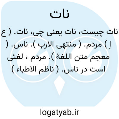 نات. ( ع اِ ) مردم. ( منتهی الارب ). ناس. ( معجم متن اللغة ). مردم، لغتی است در ناس. ( ناظم الاطباء ).