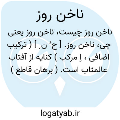 ناخن روز. [ خ ُ ن ِ ] ( ترکیب اضافی، اِ مرکب ) کنایه از آفتاب عالمتاب است. ( برهان قاطع ) ( آنندراج ). آفتاب. ( شمس اللغات ):