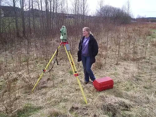 اندازه گیری دقیق پوستۀ زمین یا عوارض خشکی یا ساختمان. برای تعیین مرزها یا تخمین توپوگرافی در کارهای مهندسی به کار می رود. در اندازه گیری های خطّی و زاویه ا ی و در محاسبات، از هندسه و مثلثات استفاده می کنند.
