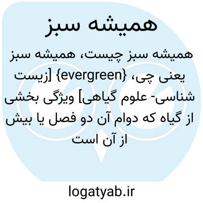 {evergreen} [زیست شناسی- علوم گیاهی] ویژگی بخشی از گیاه که دوام آن دو فصل یا بیش از آن است