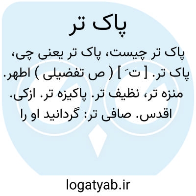 پاک تر. [ ت َ ] ( ص تفضیلی ) اطهر. منزه تر، نظیف تر. پاکیزه تر. ازکی. اقدس. صافی تر: گردانید او را بپاکی فاضلتر قریش از روی حسب... و پاکتر قریش از روی فرع. ( تاریخ بیهقی ).