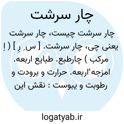 چار سرشت. [ س ِ رِ ] ( اِ مرکب ) چارطبع. طبایع اربعه. امزجه ٔاربعه. حرارت و برودت و رطوبت و یبوست: