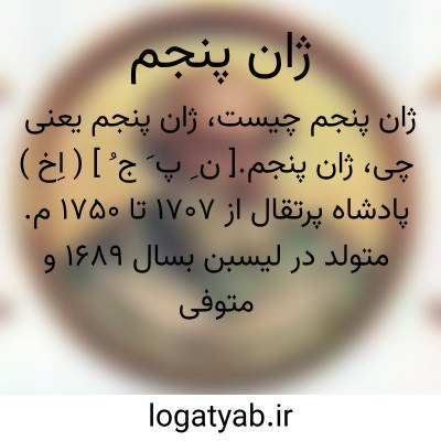 ژان پنجم.[ ن ِ پ َ ج ُ ] ( اِخ ) پادشاه پرتقال از 1707 تا 1750 م. متولد در لیسبن بسال 1689 و متوفی بسال 1750 م.