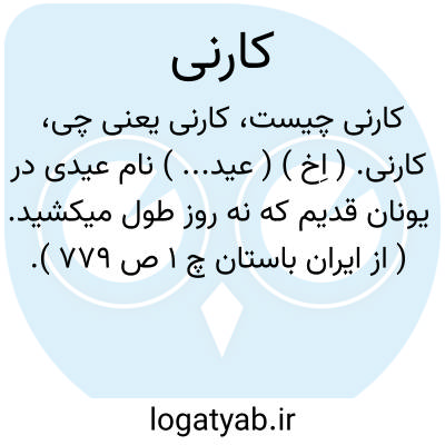 کارنی. ( اِخ ) ( عید... ) نام عیدی در یونان قدیم که نه روز طول میکشید. ( از ایران باستان چ 1 ص 779 ).