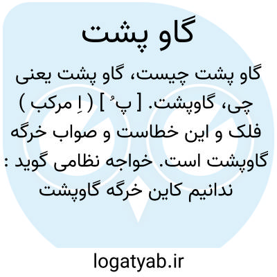 گاوپشت. [ پ ُ ] ( اِ مرکب ) فلک و این خطاست و صواب خرگه گاوپشت است. خواجه نظامی گوید: