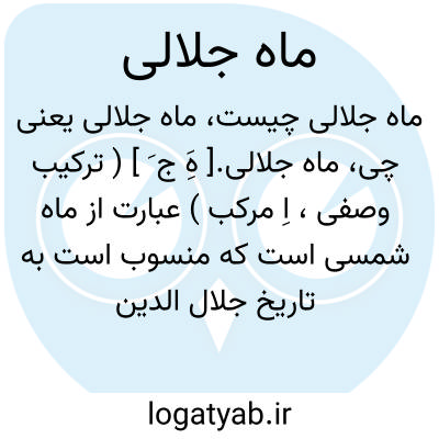 ماه جلالی.[ هَِ ج َ ] ( ترکیب وصفی، اِ مرکب ) عبارت از ماه شمسی است که منسوب است به تاریخ جلال الدین ملکشاه سلجوقی. ( غیاث ) ( آنندراج ). هریک از دوازده ماه تاریخ جلالی که اولین فروردین و آخرین اسفندماه است: