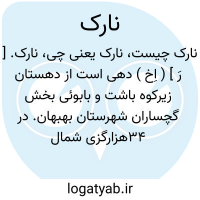 نارک. [ رِ ] ( اِخ )دهی است از دهستان توابع ارسنجان بخش زرقان شهرستان شیراز، در 76هزارگزی مشرق زرقان و یک هزارگزی راه فرعی خفرک به توابع ارسنجان، در جلگه ای واقع است. هوایش معتدل و مالاریائی است و 70 تن سکنه دارد،آبش از قنات و محصولش غلات و چغندر و شغل مردمش زراعت است. راه مالرو دارد. ( از فرهنگ جغرافیائی ایران ج 7 ص 232 ).
