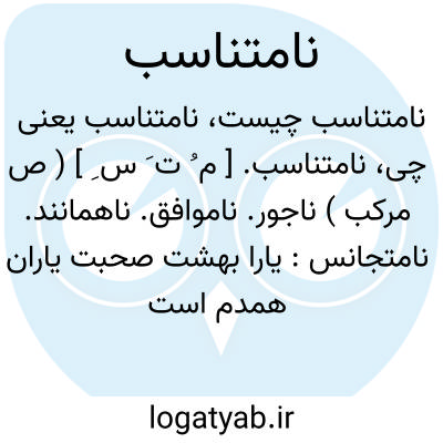 ( صفت ) ناموافق نامتجانس: ما را بهشت صحبت یاران همدم است دیدار یار نامتناسب جهنم است. ( سعدی )