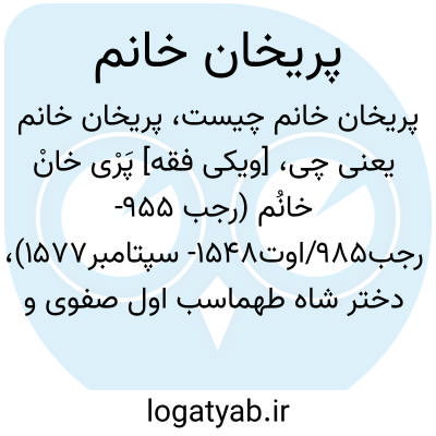از شاهزاده خانم های بانفوذ دربار صفوی. دختر شاه طهماسب اول و بسیار مورد توجه پدر بود. هنگام بیماری شاه، او توانست، برخلاف میل امیران قزلباش، نظر مساعد شاه را نسبت به سلطنت برادرش، اسماعیل میرزا، فراهم سازد. پس از مرگ شاه طَهماسْب، حیدر میرزا، برادر ناتنی او، با توطئۀ پری خان خانم و به کمک شمخال سلطان، دایی پری خان، به قتل رسید، اما شاه اسماعیل دوم، پس از رسیدن به قزوین، از قدرت وی کاست و امیران قزلباش را از اطراف او پراکند. پس پری خان خانم درصدد قتل وی برآمد و او را نیز مسموم کرد. تا روی کار آمدن سلطان محمد خدابنده، پسر بزرگ شاه طهماسب، بار دیگر امور سلطنت در اختیار پری خان خانم قرار گرفت، اما پس از جلوس سلطان محمد خدابنده به تحریک وزیر سلطان، میرزا سلطان جابری اصفهانی، و همسر شاه، خیرُالنّساء خانم، شاه دستور قتل پری خان خانم را صادر کرد و وی را در خانۀ میرزا خلیل افشار، للۀ دوران کودکی اش، خفه کردند و پیکر او را در امامزاده حسین قزوین به خاک سپردند.