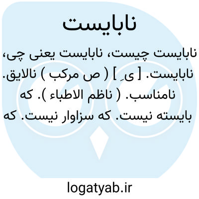 نابایست. [ ی ِ ] ( ص مرکب ) نالایق. نامناسب. ( ناظم الاطباء ). که بایسته نیست. که سزاوار نیست. که درخور نیست: جَبْه ْ؛ نابایست آوردن بر کسی. ( از منتهی الارب ). || غیرضروری. لاضروری. ( یادداشت مؤلف ). آنچه نباید. که لازم و ضروری نیست. نابجا: تفریط؛ دور کردن نابایست از کسی. امصال؛ تباه کردن و به نابایست خرج کردن مال را. غضب مُطِر؛ خشم ناجایگاه. خشم نابایست. ( منتهی الارب ). || حرام. ( منتهی الارب ). غیر جایز. خلاف شرع. ناروا. ( ناظم الاطباء ): طَلخَثَة؛ به امر نابایست آلودن. ( منتهی الارب ): و خدای را بر معصیت و نابایست نخوانی تا هلاک شوی. ( ترجمه طبری ). منزه داری این اندامها را از فجور و ناشایست و نابایست. ( قابوسنامه ). || مکروه. ( منتهی الارب ): وَذء؛ سخن نابایست و مکروه. ( منتهی الارب ). نادلپسند: