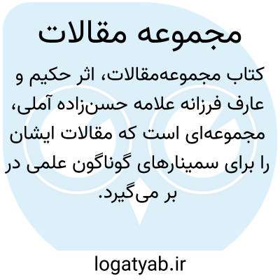 [ویکی فقه] مجموعه مقالات (کتاب). کتاب «مجموعه مقالات»، حاوی مجموعه مقالاتی است که توسط حکیم الهی، آیت الله حسن زاده آملی، برای سمینارهای مختلف علمی، به زبان فارسی، به رشته تحریر درآمده است.