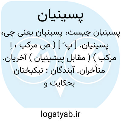 پسینیان. [ پ َ ] ( ص مرکب، اِ مرکب ) ( مقابل پیشینیان ) آخریان. متأخران. آیندگان: نیکبختان بحکایت و امثال پیشینیان پند گیرنداز آن پیشتر که پسینیان بواقعه ایشان. ( گلستان ).