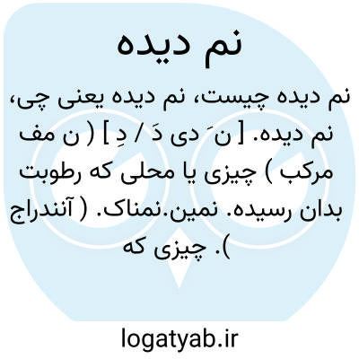نم دیده. [ ن َ دی دَ / دِ ] ( ن مف مرکب ) چیزی یا محلی که رطوبت بدان رسیده. نمین.نمناک. ( آنندراج ). چیزی که رطوبت دارد: