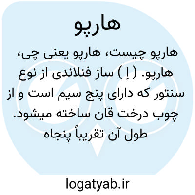 هارپو. ( اِ ) ساز فنلاندی از نوع سنتور که دارای پنج سیم است و از چوب درخت قان ساخته میشود. طول آن تقریباً پنجاه سانتیمتر است.