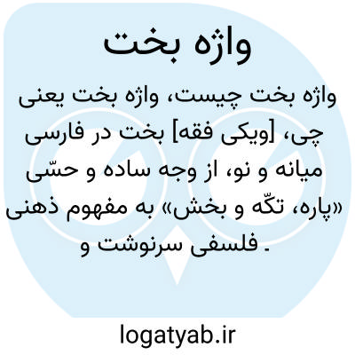 [ویکی فقه] بخت در فارسی میانه و نو، از وجه ساده و حسّی «پاره، تکّه و بخش» به مفهوم ذهنی ـ فلسفی سرنوشت و تقدیر الهی گسترش یافته است.