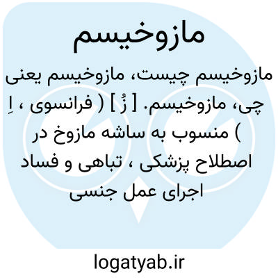 ( اسم ) تباهی و فساد اجرای عمل جنسی بنحوی که باشکنجه و ضرب و شتم و آزارهای دیگر همراه باشد. این ناخوشی بیشتر در مردانی مشاهده شده است که مبتلا بانحراف عمل جنسی و هموسکسو آلیته هستند. این حالات جنون خود آزاری را مازوخ در بعضی نوشته هایش توصیف و تشریح کرده است مازوشیسم شهوت خود آزاری.