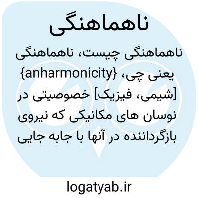 {anharmonicity} [شیمی، فیزیک] خصوصیتی در نوسان های مکانیکی که نیروی بازگرداننده در آنها با جابه جایی رابطه ای غیرخطی دارد