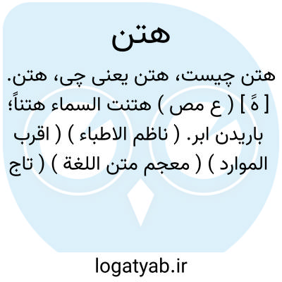 هتن. [ هَُ ت ْ ت َ ] ( ع اِ ) ج ِ هاتن و هتون. ( تاج العروس ) ( اقرب الموارد ) ( معجم متن اللغة ) ( منتهی الارب ). رجوع به هریک از این کلمات شود.