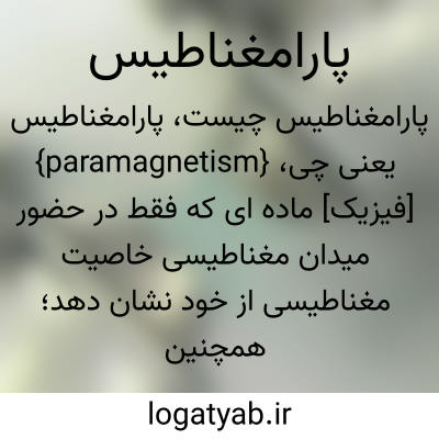 {paramagnetism} [فیزیک] ماده ای که فقط در حضور میدان مغناطیسی خاصیت مغناطیسی از خود نشان دهد؛ همچنین خاصیت چنین ماده ای