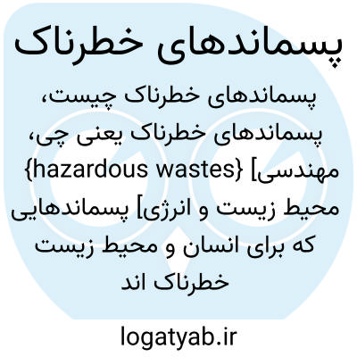 {hazardous wastes} [مهندسی محیط زیست و انرژی] پسماندهایی که برای انسان و محیط زیست خطرناک اند و دفع و جابه جایی آنها باید براساس مقررات ویژه باشد