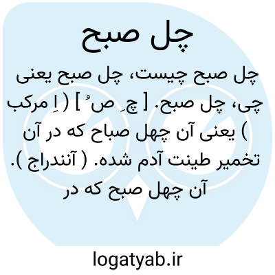 چل صبح. [ چ ِ ص ُ ] ( اِ مرکب ) یعنی آن چهل صباح که در آن تخمیر طینت آدم شده. ( آنندراج ). آن چهل صبح که در تخمیر خمیر طینت آدم گذشت. ( شرفنامه منیری ). چهل صبحی که گل آدم تخمیر شده بود. ( ناظم الاطباء ). مخفف چهل صبح. و به همان معنی. ( از آنندراج ):