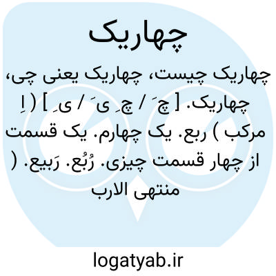 چهاریک. [ چ َ / چ ِ ی َ / ی ِ ] ( اِ مرکب ) ربع. یک چهارم. یک قسمت از چهار قسمت چیزی. رُبُع. رَبیع. ( منتهی الارب ): هزیع؛ مقدار یک چهاریک از شب. رجوع به چاریک و ربع و مُحَلّه شود.