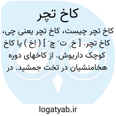 کاخ تچر. [ خ ِ ت َ چ َ ] ( اِخ ) یا کاخ کوچک داریوش. از کاخهای دوره هخامنشیان در تخت جمشید. در رساله «شرح اجمالی آثار تخت جمشید» آمده: بقایای کاخ کوچک داریوش در کتیبه های میخی بنام تچر خوانده شده، بواسطه شفافی مخصوص بعضی سنگهای آن بتالار آئینه معروف گردیده است. روی صخره طبیعی کوهستانی سکوئی که در حدود دو متر و نیم از کف زمین آپادانا بلندتر است از تخته سنگهای جسیم و منظم ترتیب داده برفراز آن کاخ کوچک داریوش را ساخته اند. نمای اصلی و مدخل بزرگ این کاخ رو بجنوب بوده، پشت آن به آپادانا است. و پلکان و مدخل فرعی دیگری از طرف مغرب یعنی از جانب جلگه دارد.