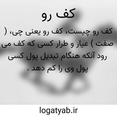 ( صفت ) عیار و طرار کسی که کف می رود آنکه هنگام تبدیل پول کسی پول وی را کم دهد.