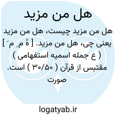 هل من مزید. [ هََ م ِ م َ ] ( ع جمله اسمیه استفهامی ) مقتبس از قرآن ( 30/50 ) است. صورت ترکیبی این جمله تأویل به مصدر میشود و به جای «بیشتر خواستن » و «افزون طلبیدن » به کار میرود: