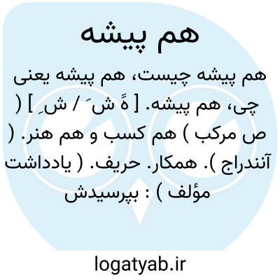 هم پیشه. [ هََ ش َ / ش ِ ] ( ص مرکب ) هم کسب و هم هنر. ( آنندراج ). همکار. حریف. ( یادداشت مؤلف ):