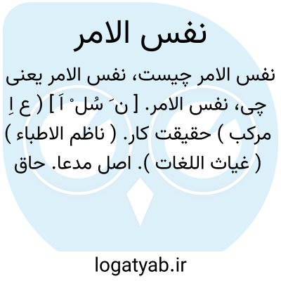 نفس الامر. [ ن َ سُل ْ اَ ] ( ع اِ مرکب ) حقیقت کار. ( ناظم الاطباء ) ( غیاث اللغات ). اصل مدعا. حاق واقع. || ثابت محقق. کار واقعی. ( غیاث اللغات ). || کلمه نفس الامر یعنی حد ذات هر شی و بعضی گفته اند مراد مرتبه عقل فعال است و عقل اول و نفس کلیه را نیز نفس الامر نامند، و عالم امر یعنی عالمی را که روح و حقیقت عالم اجسام است نفس الامر گویند. ( فرهنگ علوم عقلی ص 596 از اسفار و کشاف اصطلاحات الفنون ). || عبارت از علم ذاتی است که حاوی همه صور اشیاء بود از جزئی و کلی و صغیر و کبیر و اجمال و تفصیل، علمی باشد یا عینی. ( تعریفات ).