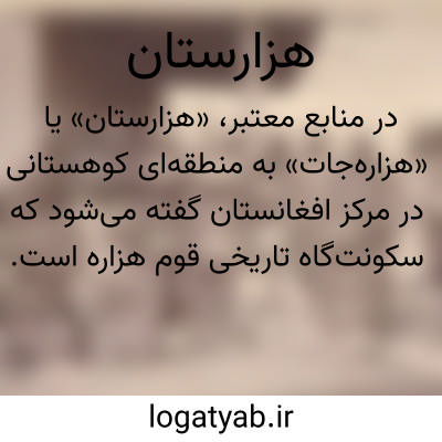 💡 هزارستان (هزاره‌جات) سرزمین تاریخی و بومی مردم هزاره که در مناطق مرکزی افغانستان قرار گرفته است و مرزهای آن از نظر تاریخی در حال تغییر بوده است. تا سال ۱۸۹۰ (میلادی) هزاره‌ها عمدتاً خودمختار بودند و تمام منطقهٔ هزارستان را تحت کنترل داشتند.