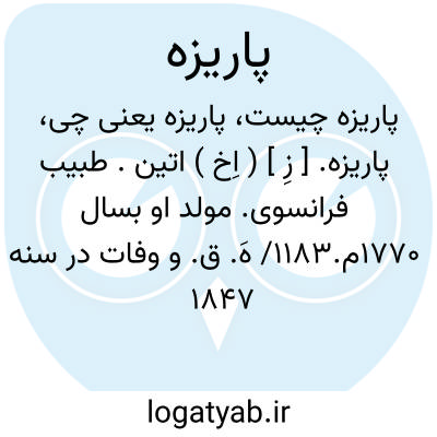 پاریزه. [ زِ ] ( اِخ ) اتین. طبیب فرانسوی. مولد او بسال 1770م.1183/ هَ. ق. و وفات در سنه 1847 م.1264/ هَ. ق.