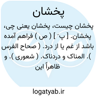 پخشان. [ پ َ ] ( ص ) فراهم آمده باشد از غم یا از درد. ( صحاح الفرس ). المناک و دردناک. ( شعوری ). و ظاهراً این صورت مصحف پخسان است.